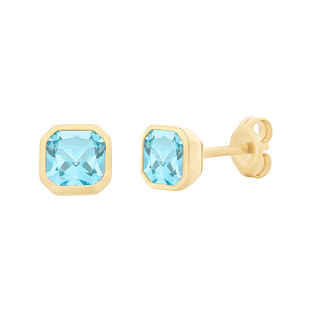 Elevate your look with the breathtaking blue Candice Studs. These exquisite earrings are crafted from 9ct yellow gold and feature a mesmerizing blue topaz gemstone in a bezel setting. The gemstone boasts a cushion cut, adding a touch of sophistication to your ensemble.